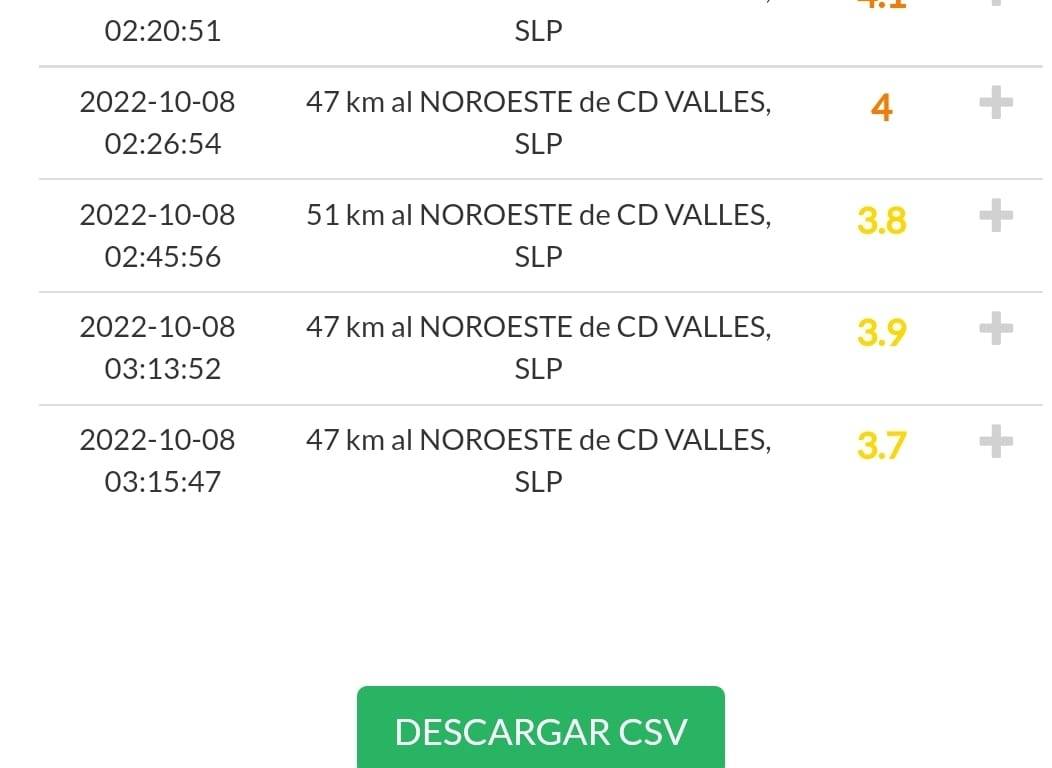 Cabe señalar que todos tienen marcado como epicentro al noroeste de Ciudad Valles y también fueron percibidos por el sismógrafo de Villa Hidalgo.