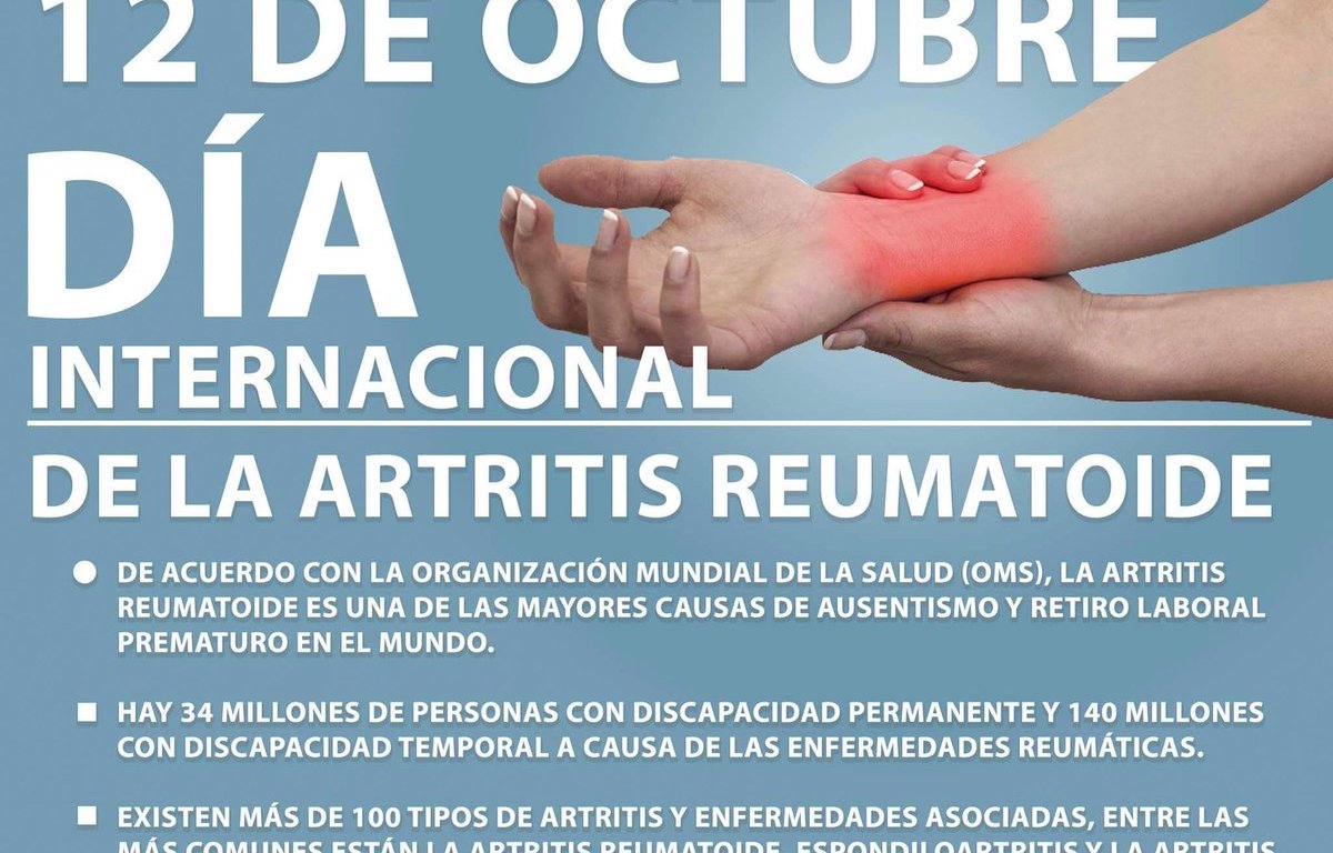 El 12 de octubre se conmemora el Día Mundial de la Artritis Reumatoide, fecha que institucionalizó la Arthritis Rheumatism International desde el año 1996.