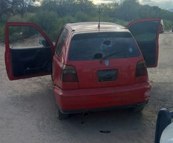 A su vez, los uniformados de la GCE que patrullaban sobre la calle de Miguel Hidalgo, tuvieron a la vista un Golf, modelo 1999, color rojo, en aparente estado de abandono. Tras consultar su status en la base de datos de Plataforma México, el Operador Interviniente del Centro de Control, Comando, Comunicaciones y Cómputo (C-4), informó que el automotor tiene reporte de robo desde el día 02 de octubre de 2022. El vehículo presenta impactos de proyectil de arma de fuego.