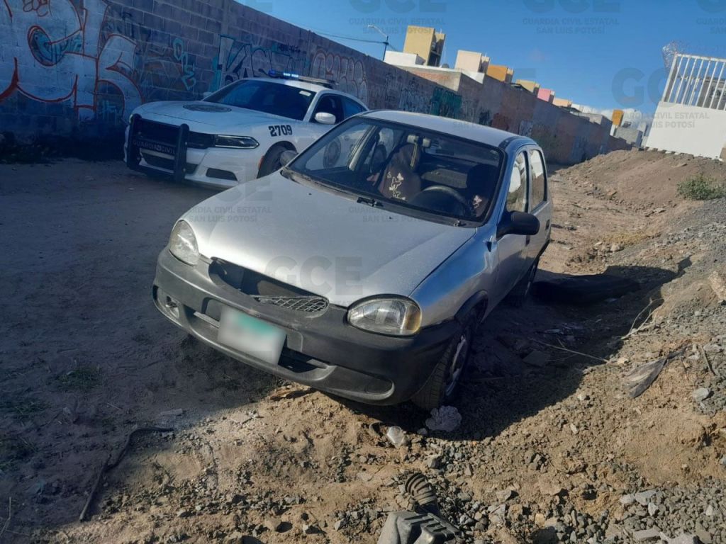 En el municipio de en el municipio de Soledad de Graciano Sánchez, se aseguraron dos automotores; el primero de ellos sobre el camino de terracería que conduce al fraccionamiento Mar de Plata; ahí, se ubicó calcinada una camioneta Ford, tipo F-50, color azul oscuro, modelo 1989, reportada como robada el 10 de octubre de 2022, en Periférico Norte. En Camino a San José del Barro, a inmediaciones de las vías México-Laredo en el fraccionamiento Rinconada del Parque; los oficiales de la GCE localizaron un Chevrolet, línea Chevy Monza, modelo 2003, color plata, contaba con reporte de robo el día 10 de octubre de 2022, en la colonia Fresnos.