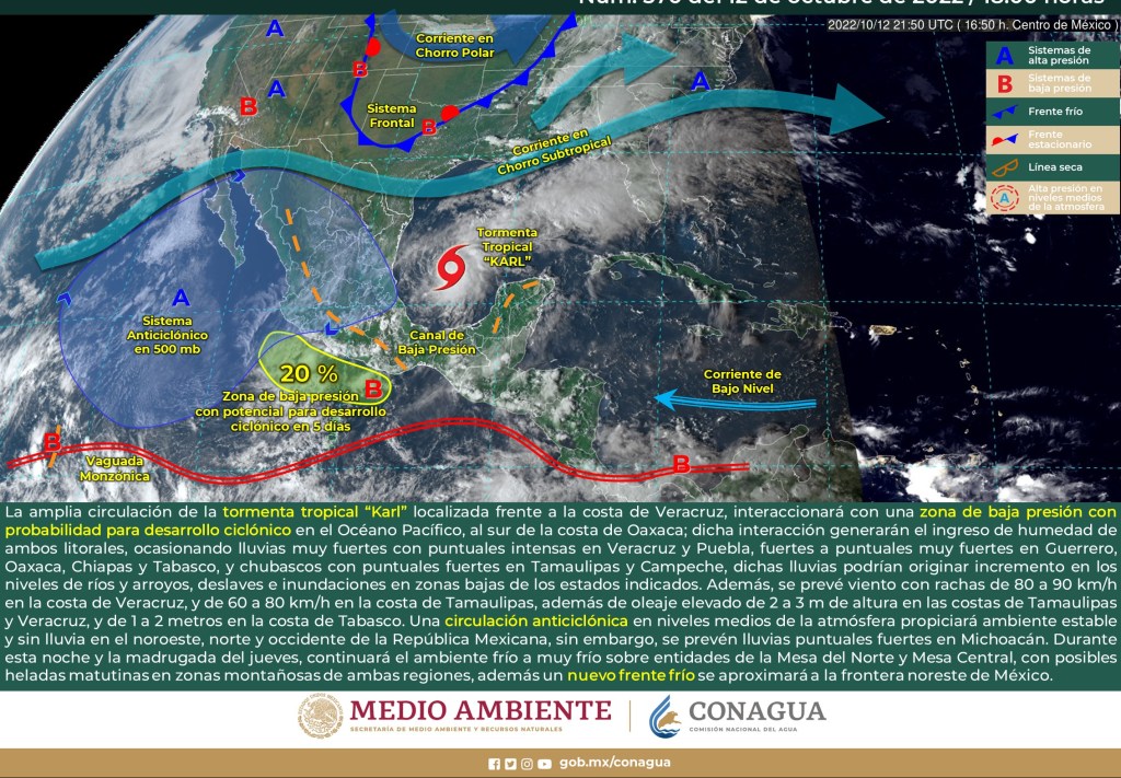 Pronóstico de lluvias para 13 de octubre de 2022: