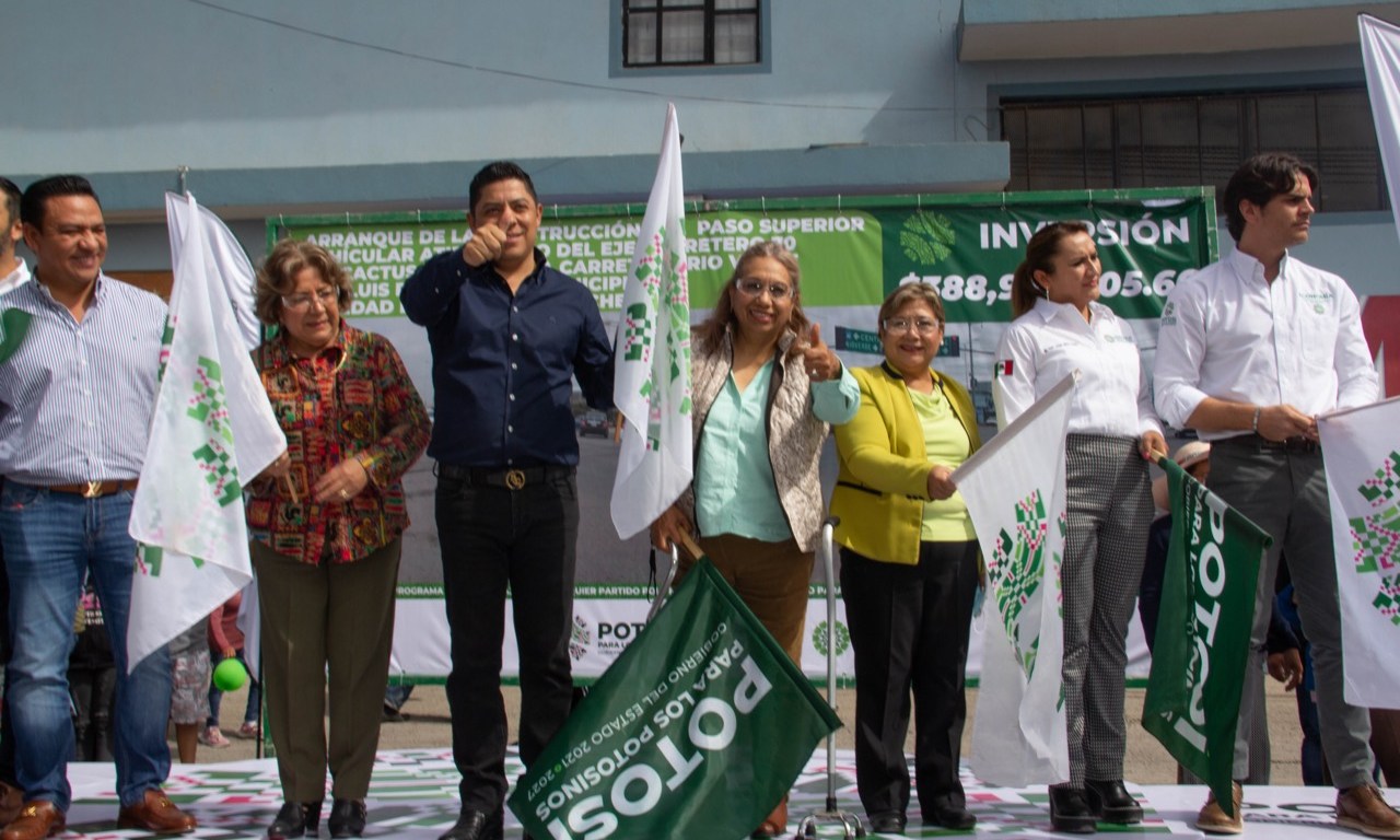 La alcaldesa de Soledad de Graciano Sánchez, Leonor Noyola Cervantes, y el Gobernador del Estado, Ricardo Gallardo Cardona pusieron en marcha la construcción del paso Superior vehicular atirantado del eje carretero 70, entre Avenida Cactus y Avenida Ignacio Zaragoza en carretera Rio Verde San Luis Potosí en el municipio de Soledad de Graciano Sánchez.