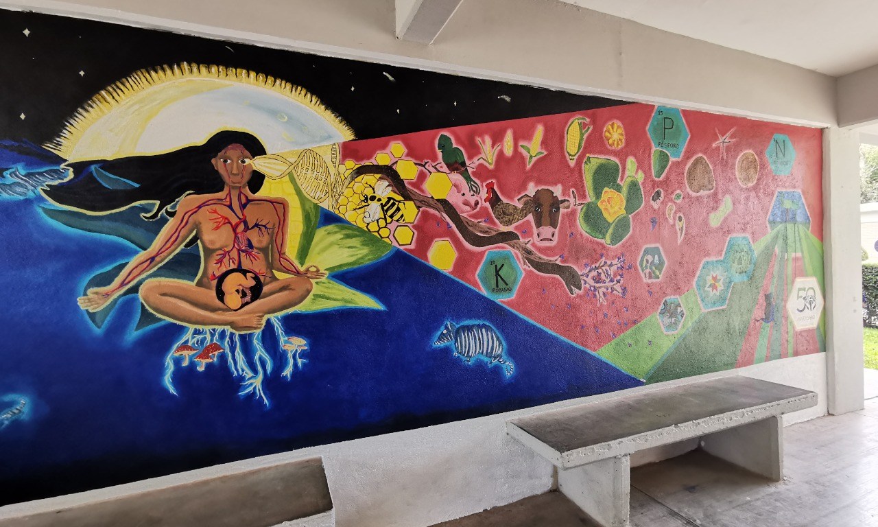 Ubicado frente al auditorio de la facultad, fue develado el colorido mural “Creadora”, que es pieza de la alumna Madeleine Ramírez Beltrán, con la colaboración de Daniela Monreal Moreno, Iván Beltrán Loredo y Víctor Sánchez Ramírez. La obra celebra el aporte de las mujeres en la agricultura y en la producción de alimentos, sobre todo, la mano de obra que según datos de la FAO, aporta el 43% del trabajo en el campo.