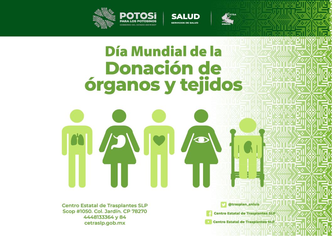 Desde el 2005, cada 14 de Octubre, se conmemora el Día Mundial de la Donación de Órganos, promovido por la Organización Mundial de la Salud (OMS). Con la finalidad difundir la donación como una forma de trascender en la vida de personas que requieren un órgano o tejido que les devuelva la salud. Cada vez más personas se encuentran inscritas a la espera de un donante, en México suman 19 mil 964 pacientes inscritos para recibir un trasplante. En San Luis Potosí son 273 los pacientes inscritos, de los cuales 150 esperan un trasplante renal, 122 corneal y uno hepático.