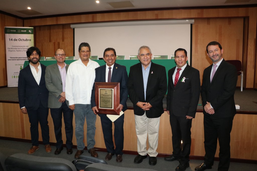 En el marco, de la conmemoración se llevó a cabo la plática «Estrategias para incrementar la calidad, eficiencia y eficacia de los programas de donación» impartida por el Dr. Walter Querevalu Murillo, de la Coordinación Nacional de Donación y Trasplantes del IMSS; al finalizar, en un evento protocolario encabezado por el Secretario de Salud, Dr. Daniel Acosta Díaz de León, fueron reconocidos la Dra. María del Carmen Medina González, el Dr. Sergio Enrique Cifuentes Gordillo, el Dr. Claudio Alberto García Perales por su destacada participación en coordinación de procesos de donación de órganos y tejidos para trasplante en el Estado de San Luis Potosí, en beneficio de pacientes en situación vulnerable, así como al Notario Roberto Castañón Ruiz, por su actitud altruista al otorgar certeza legal a la manifestación expresa de donación voluntaria de órganos y tejidos para trasplantes.