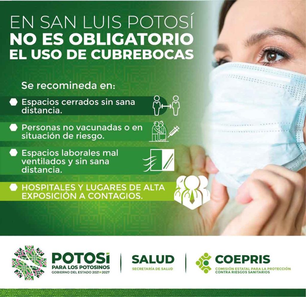 El Gobernador del Estado Ricardo Gallardo Cardona, reafirmó que en San Luis Potosí el uso del cubrebocas es opcional, ya que, desde el mes de septiembre, se avanzó a un modelo de prevención que coadyuva a la recuperación económica, con la integración de medidas que privilegian el lavado de manos, sana distancia, promover la vacunación y la protección a la población más vulnerable, fortaleciendo el desarrollo y dinamismo de la entidad.