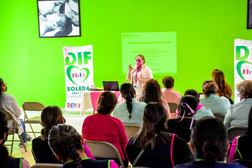 Como parte de las acciones que ha emprendido el Ayuntamiento de Soledad de Graciano Sánchez, para sensibilizar a las mujeres del municipio respecto a la detección oportuna del cáncer de mama; personal de la Jurisdicción Sanitaria número uno de los Servicios de Salud en el Estado, capacitó a personal del Sistema Municipal DIF, presidido por María del Pilar Cardona Reyna a fin de que sean ellas quienes transmitan a las mujeres soledenses, las técnicas de autoexploración y detectar la enfermedad de forma oportuna.