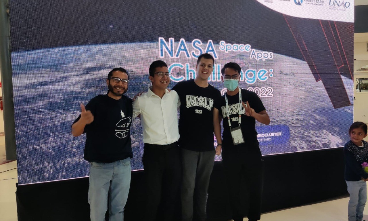 Con la visión de contribuir a que San Luis Potosí sea un nicho de tecnología digital, el equipo “Devsthink” de la Facultad de Ingeniería de la Universidad Autónoma de San Luis Potosí (UASLP) participa en el concurso internacional de la NASA “Space Apps 2022”, donde obtuvo el 1er. lugar en el capítulo Querétaro de la competencia nacional.