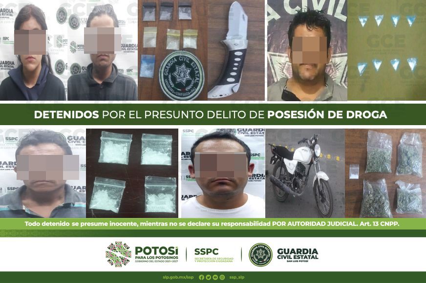 Una de las detenciones se suscitó en la zona centro de la capital potosina, donde los agentes de seguridad tuvieron contacto con un individuo reportado con anterioridad mediante denuncias anónimas sobre la presunta comisión de hechos delictivos en este sector como la venta de droga.