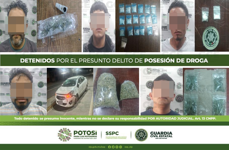 Dentro de las acciones preventivas y disuasivas contra el delito, agentes de la Guardia Civil Estatal (GCE) detuvieron en diferentes acciones a 9 personas por presuntos delitos contra la salud en su modalidad de posesión de droga.