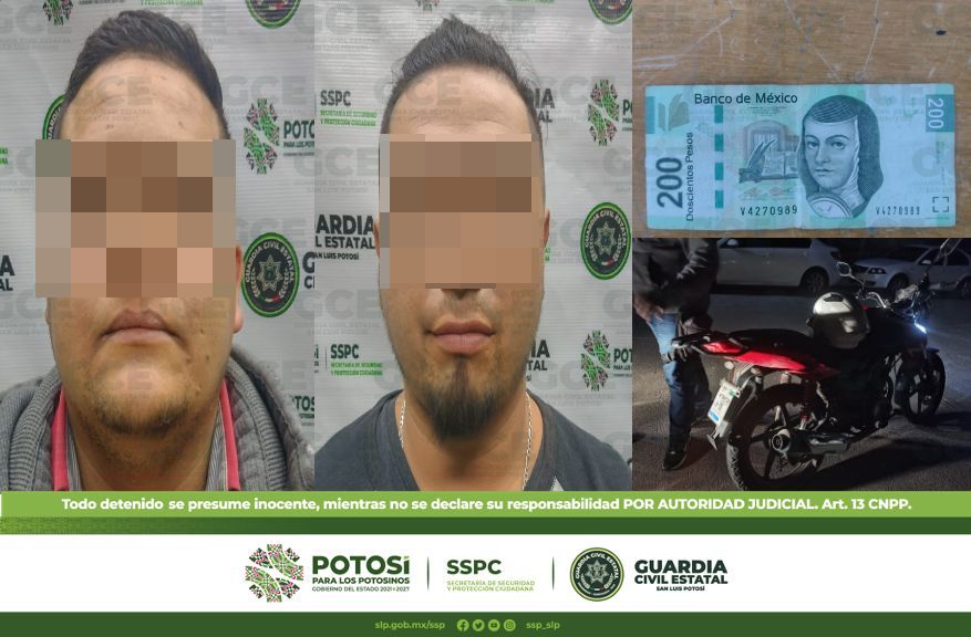 Los detenidos y la motocicleta quedaron a disposición de la Fiscalía General del Estado.
