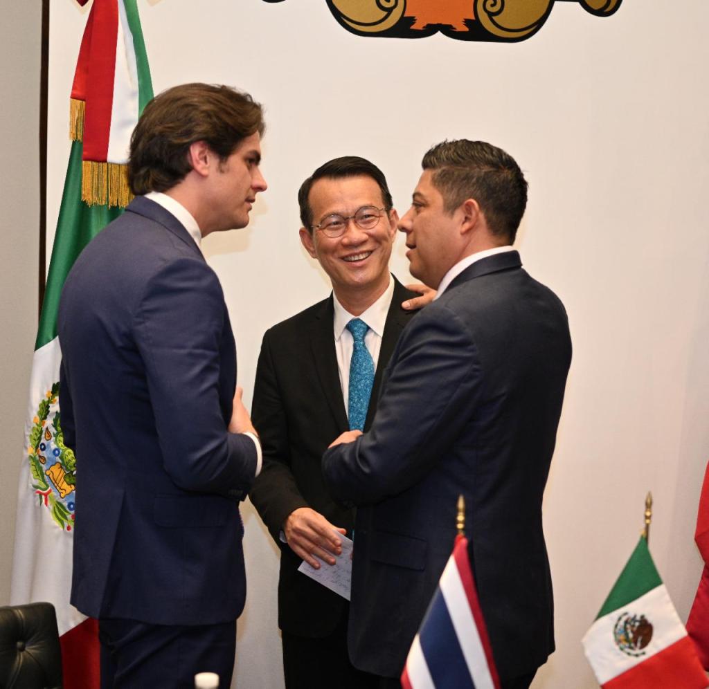 El diplomático asiático expresó que después de esta visita a San Luis Potosí y conocer todas las posibilidades que se ofrecen a quienes desean hacer negocios, efectuará las acciones necesarias para que se puedan llevar a cabo inversiones o algunos intercambios, al destacar que en México existen 43 empresas de capital tailandés, principalmente relacionadas con la industria automotriz, por lo que es posible generar esta alianza estratégica.