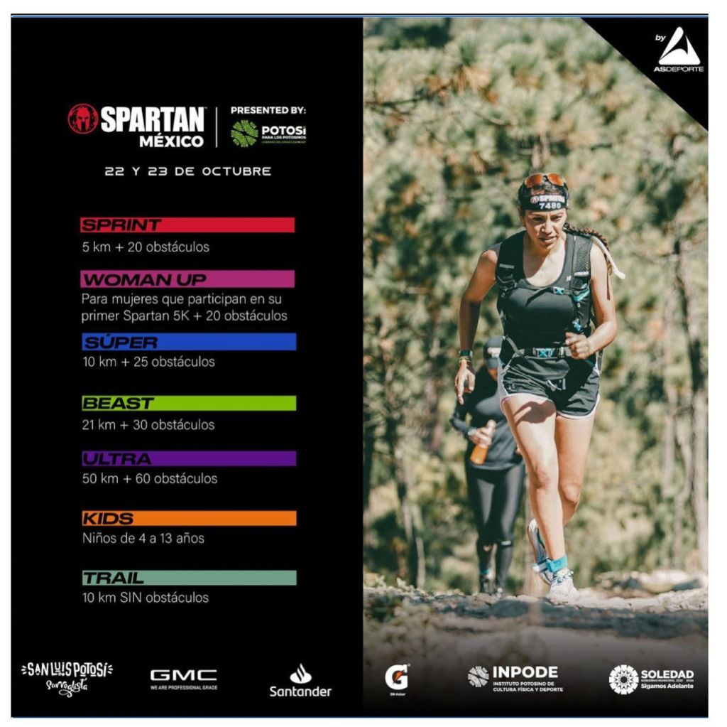 La carrera de obstáculos contempla las distancias de Sprint con 5 kilómetros más 20 obstáculos; Súper de 10 kilómetros y 25 obstáculos; Beast de 21K y 30 obstáculos; Ultra de 50K y 60 obstáculos; Trail 10 y 21K sin obstáculos, y la Kids para niños de 4 a 13 años.