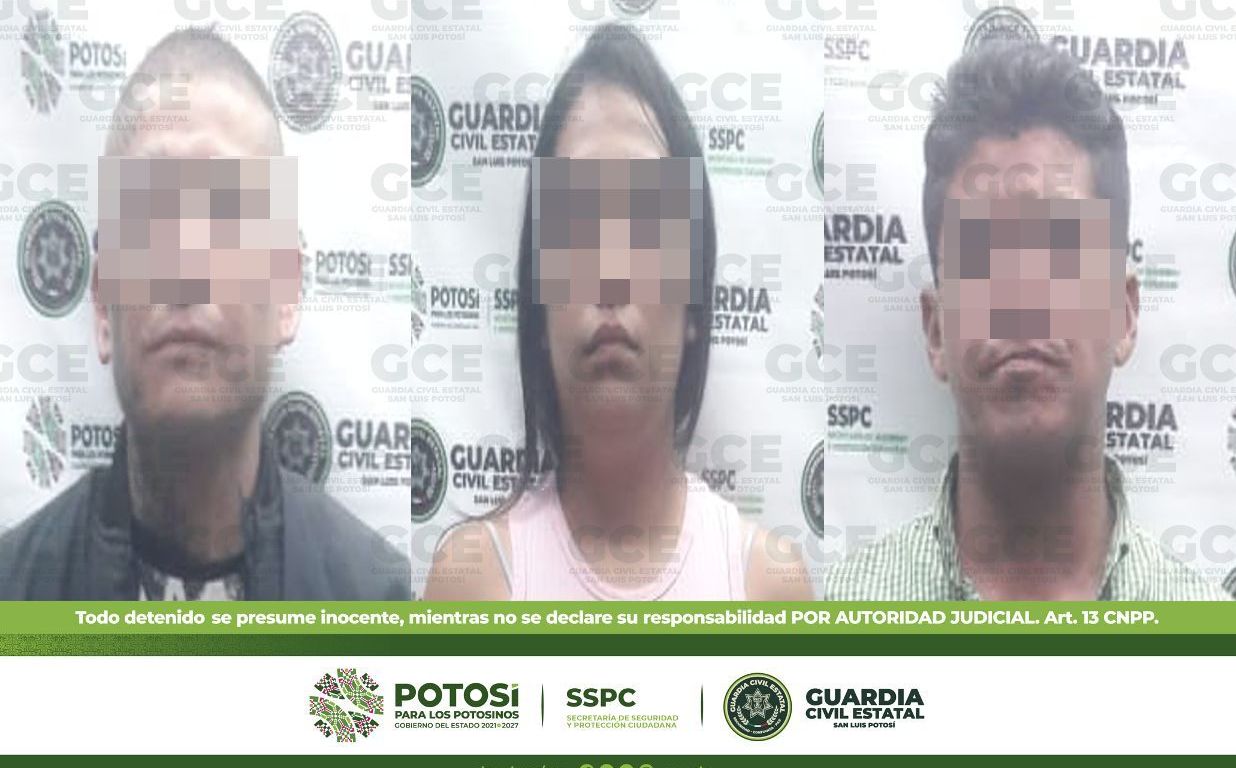 Los presuntos identificados como Guillermo de 37 años de edad, Estela de 20 años y Gustavo de 29, fueron detenidos tras ser señalados por la parte afectada como quienes lo despojaran de su unidad vehicular.