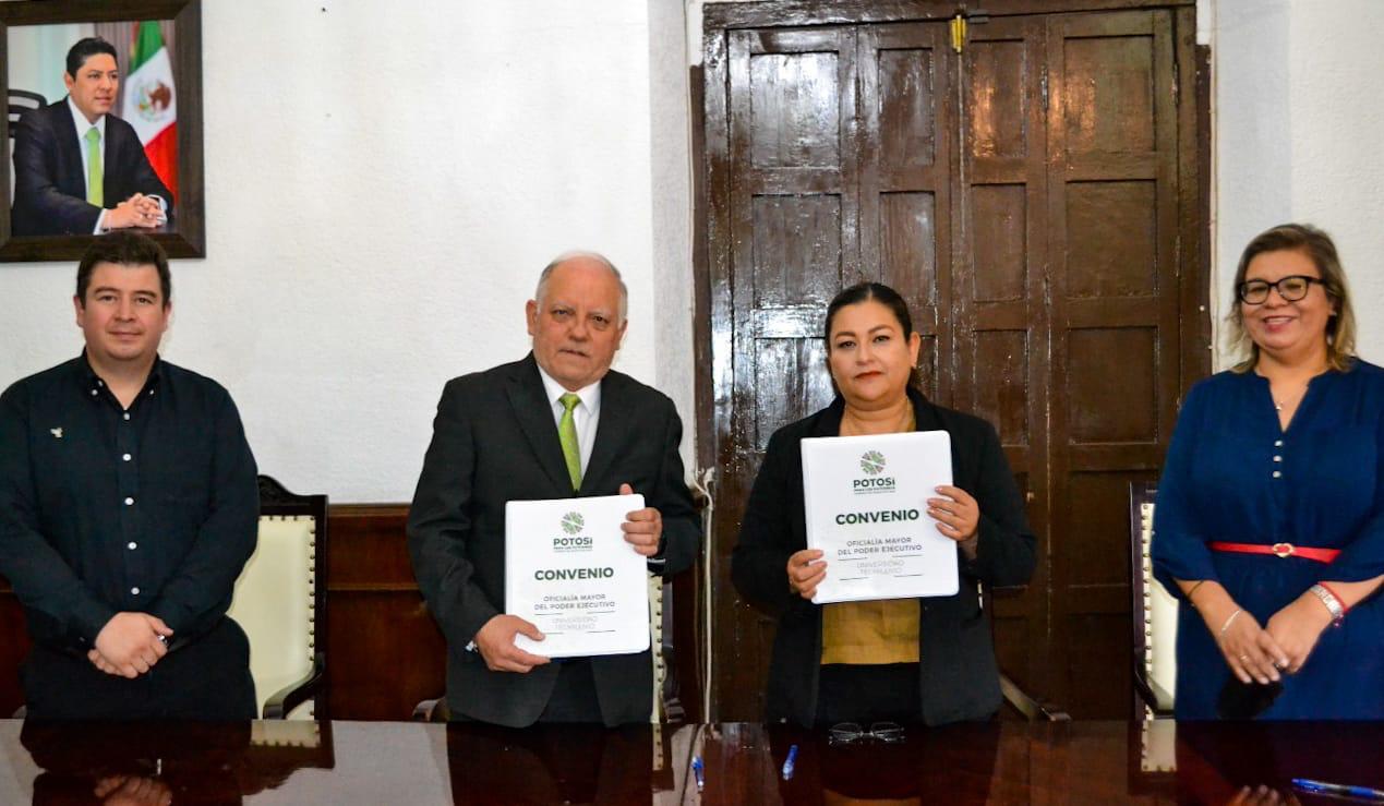 La firma del convenio de colaboración estuvo a cargo del oficial mayor, Noé Lara Enríquez y la maestra Ana Victoria Becerril Loaiza, directora de Campus San Luis Potosí Tecmilenio, además de Lilian Berenice Arias Rivera, directora Vinculación Tecmilenio; Mateo Martínez ejecutivo de Vinculación Empresarial y Sagrario Paz Castro, subdirectora de Desarrollo Humano de la Oficialía Mayor.