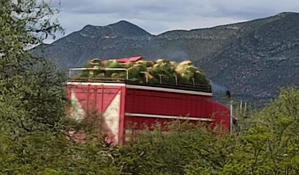 Por denuncia ciudadana, con la intervención de personal de la Dirección de Ecología del Ayuntamiento de Villa Hidalgo y de la PROFEPA, en un operativo efectuado el día de ayer martes 18 de octubre, aproximadamente a las 21:00 horas, sobre la Carretera Federal 57, Elementos de la Guardia Nacional lograron en flagrancia el aseguramiento de un camión Tortón rojo, marca Freightliner, placas 65-AW-4Y del servicio público federal de carga, repleto en su interior de planta denominada “sotol” (Dasylirion acrotrichum), así como del chofer de la unidad y cuatro acompañantes más, todos puestos a disposición del Agente del Ministerio Público de la Federación.