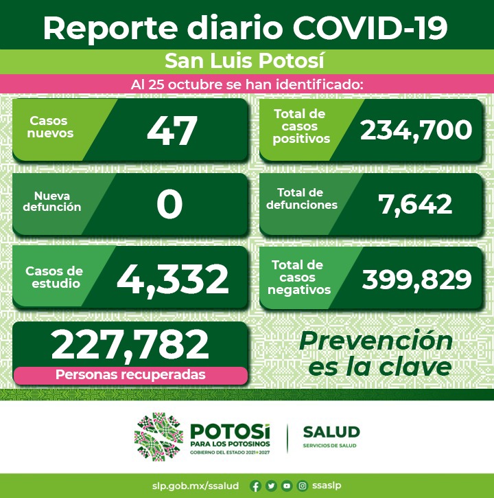En la Jurisdicción Sanitaria I se detectaron 45 de los nuevos casos; dos en personas residentes de otra entidad y no se presentaron casos nuevos en las siguientes jurisdicciones sanitarias II de Matehuala, III de Villa de Reyes, VI de Rioverde, V de Ciudad Valles, VI de Tamazunchale y VII de Tancanhuitz.