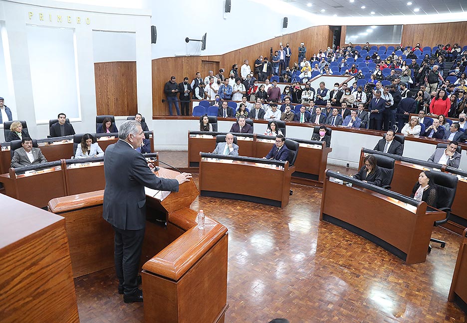 El titular de SEGOB, Adán Augusto López agradeció a los integrantes de la LXIII Legislatura la invitación y reconoció la labor para la elaboración de leyes que beneficien al estado, y al país; y agregó que se trata de una encomienda del Ejecutivo Federal, Andrés Manuel López Obrador, para inaugurar una nueva etapa en la vida política del país, para una mayor coordinación del Poder Ejecutivo con el Poder Legislativo, a través de sus cámaras de Senadores y Diputados, y los Congresos Locales, que forman parte del constituyente permanente.