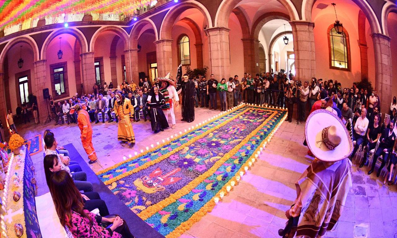 En un colorido y emotivo evento, el Gobernador de San Luis Potosí Ricardo Gallardo Cardona, entregó a las y los potosinos un magno y monumental Altar de Muertos en Palacio de Gobierno, con lo que arrancó formalmente la conmemoración y festividad de Día de Muertos y el programa «Xantolo en tu Ciudad», que permitirá a las y los habitantes de la zona metropolitana y visitantes a conocer y vivir de cerca las tradiciones, riqueza cultural e historia de la Huasteca potosina.