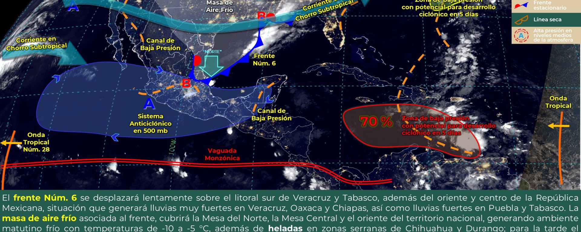 Evento de “Norte” con rachas de 70 a 90 km/h: costa de Veracruz e Istmo y Golfo de Tehuantepec, y con rachas de 60 a 70 km/h en la costa de Tamaulipas.