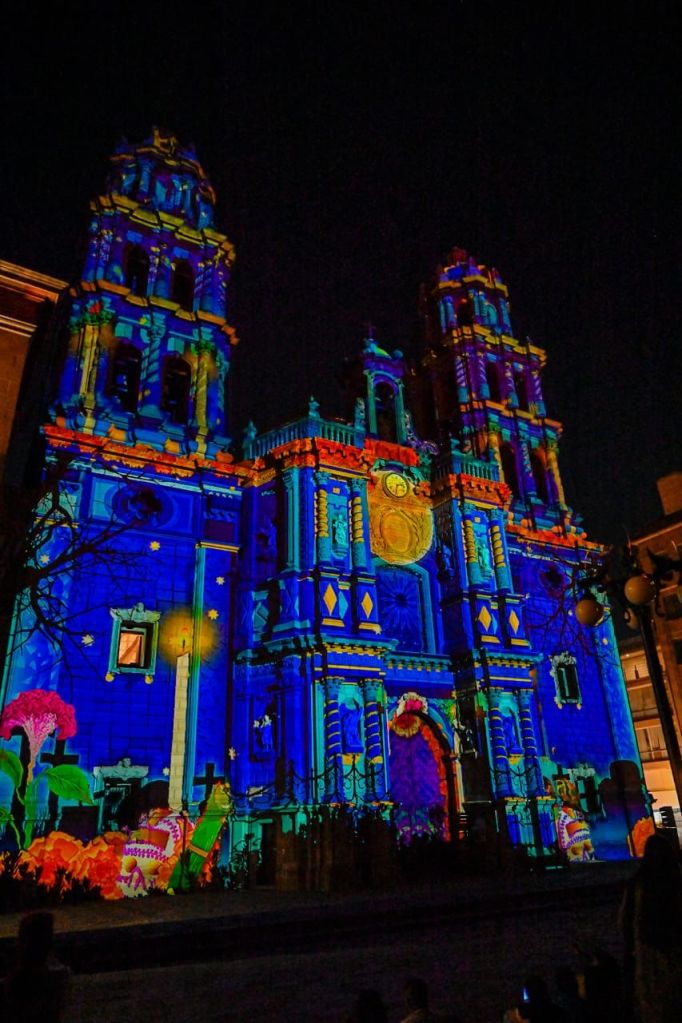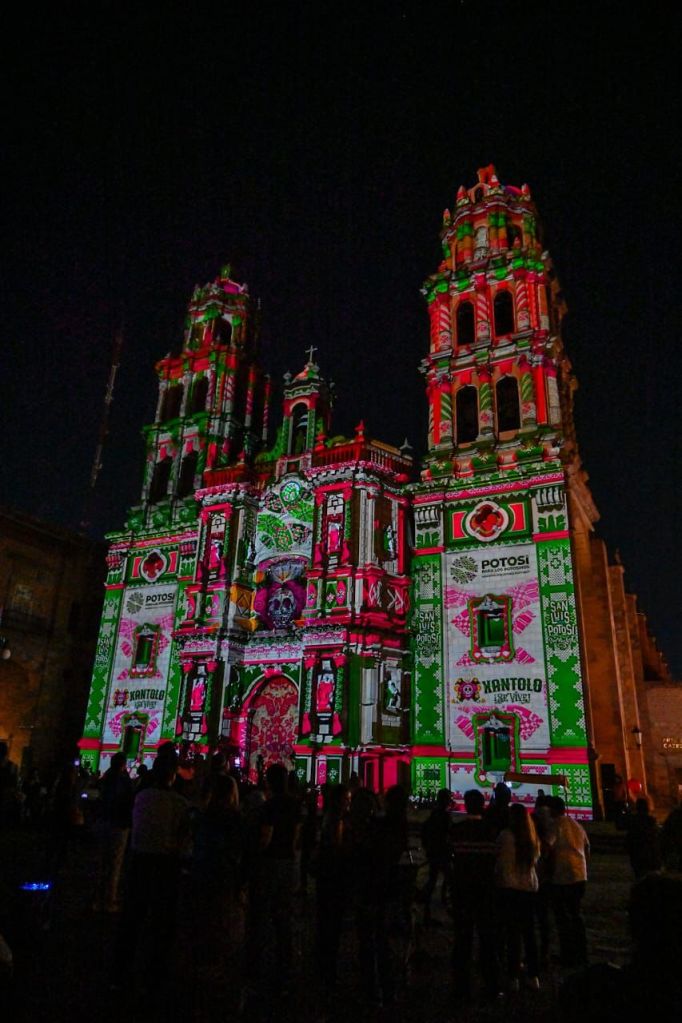 Durante la primera noche del programa «Xantolo en tu Ciudad», el Centro Histórico de la capital registró una gran afluencia de visitantes, quienes maravillados admiraron la proyección de la «Ofrenda de Luz» en la Catedral metropolitana, como parte de la ya tradicional Fiesta de Luz de San Luis Potosí.