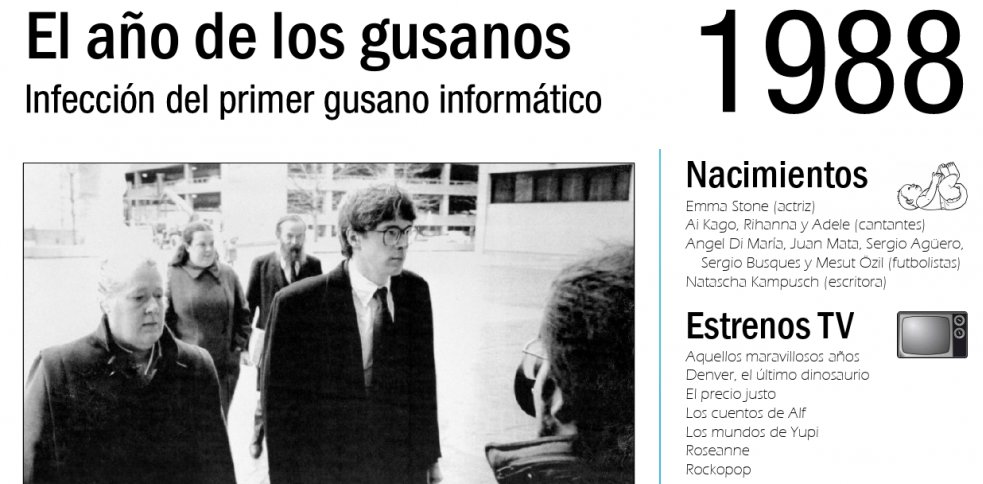 Aparece el primer gusano (malware autorreplicable) de Internet, por entonces ARPANET: el llamado Morris Worm, creado por un estudiante que decía haberlo propagado por error y que llegó a infectar a 6.000 computadoras.
