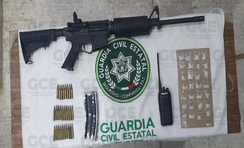 En el marco de las acciones de seguridad dispuestas dentro del “Operativo Huizache Seguro”, implementado con el objetivo de inhibir conductas delictivas en la región Altiplano, agentes de la Guardia Civil Estatal (GCE) aseguraron un arma larga, varios cartuchos útiles, droga y un radio portátil en este municipio.