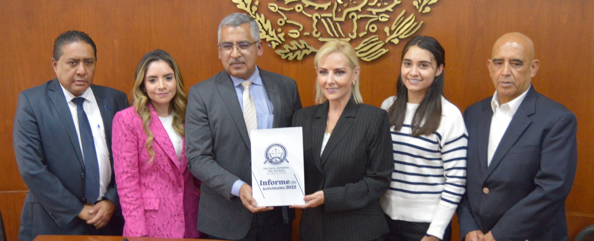 La presidenta de la Directiva del Congreso del Estado, diputada Aranzazu Puente Bustindui recibió el informe del Fiscal General del Estado José Luis Ruiz Contreras, conforme a lo establecido en el artículo 122 TER de la Constitución Política del Estado y la fracción X del artículo 22 de la Ley Orgánica de la Fiscalía General del Estado.