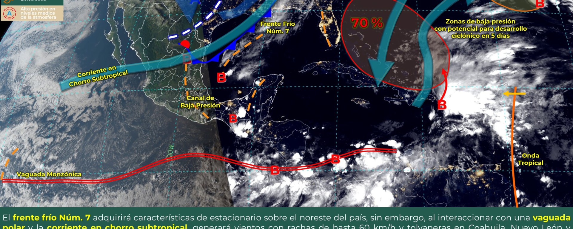 Viento con rachas de 40 a 60 km/h: Nuevo León y Tamaulipas.