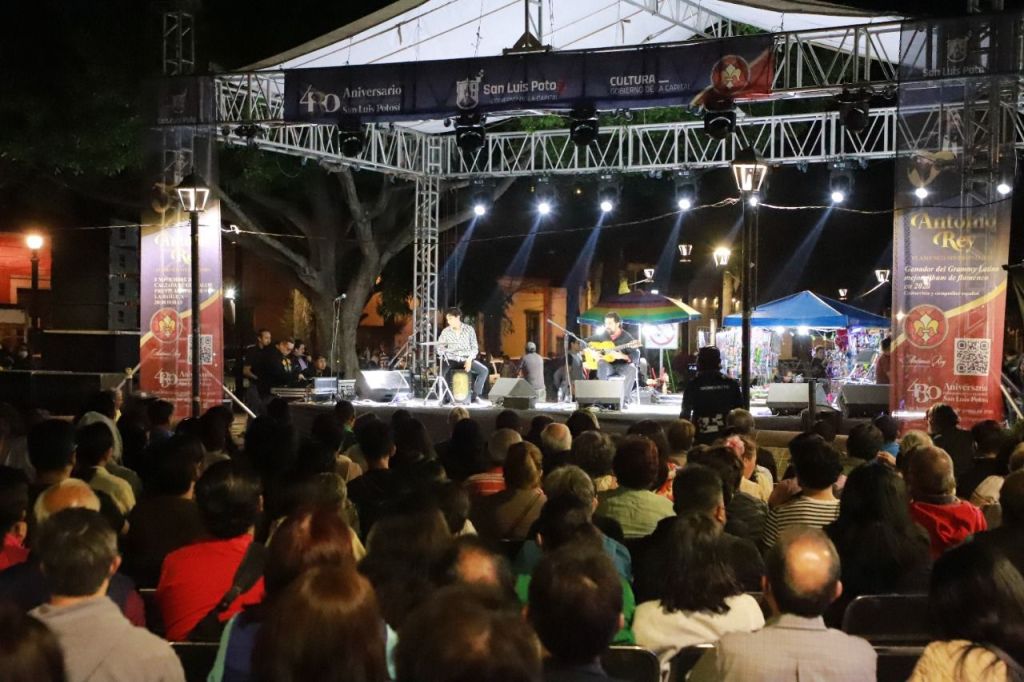 Para seguir con la celebración del 430 Aniversario de Fundación de la Ciudad, la noche del sábado se presentó el guitarrista y compositor español de trayectoria internacional Antonio Rey, con su espectáculo «Flamenco sin Fronteras» en un concierto de gala al aire libre, cuyo escenario fue la Calzada de Guadalupe, el cual fue disfrutado por decenas de familias potosinas.