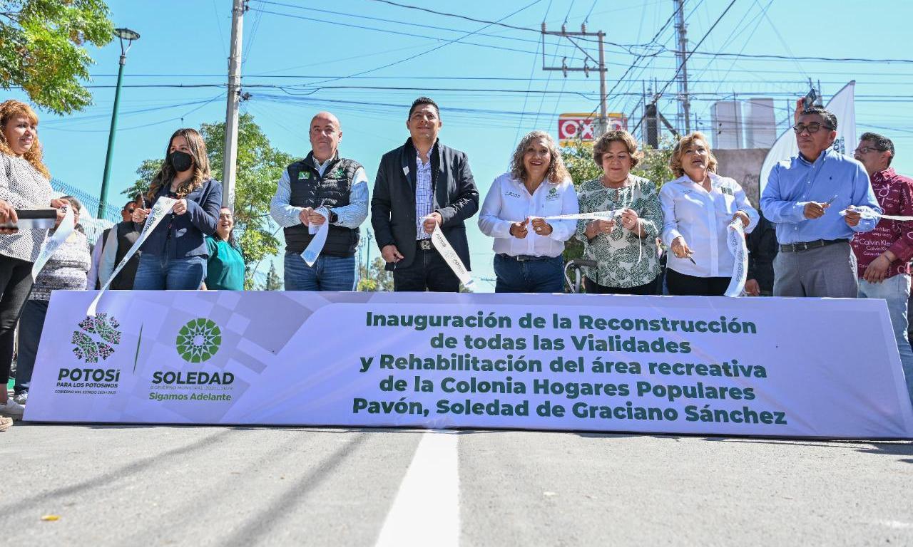 Con una inversión de 20 millones de pesos, el Gobernador de San Luis Potosí Ricardo Gallardo Cardona, entregó la obra “Reconstrucción de todas las vialidades y rehabilitación del área recreativa de la colonia Hogares Populares Pavón”, como parte del programa piloto que el Gobierno del cambio implementó para rescatar colonias completas y que al resultar todo un éxito será replicado con una bolsa de recursos por tres mil millones de pesos en la capital y Soledad de Graciano Sánchez.