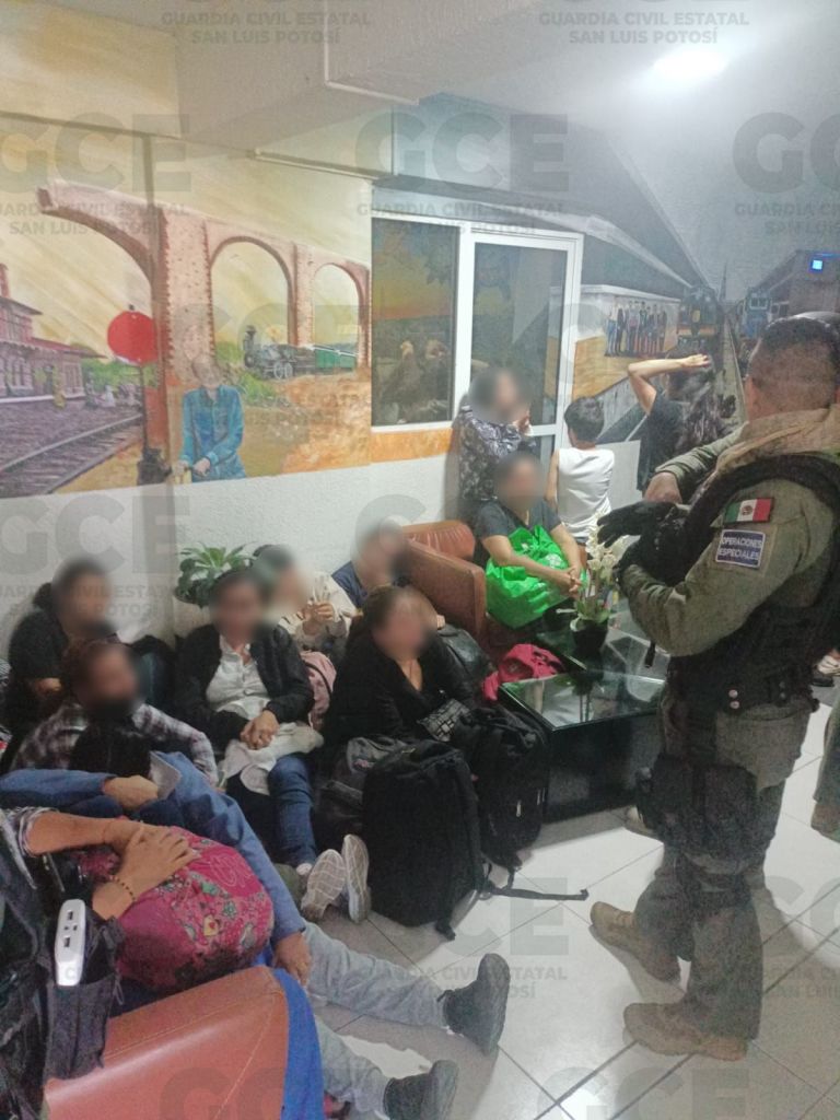 Derivado de la colaboración interinstitucional que existe con el INM se acude a brindar apoyo mediante labores de seguridad y resguardo primeramente en el “Hotel California” de la carretera a Rioverde en el Municipio de Soledad, ahí se rescataron a 59 personas de nacionalidad cubana, guatemalteca, hondureña y ecuatoriana.