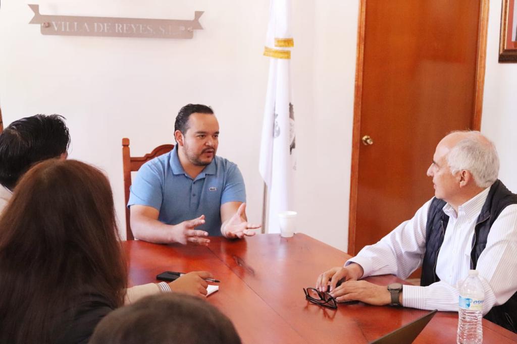El alcalde de Villa de Reyes, Daniel Lagunas López recibió al gerente de Liconsa, Alberto Elías Sánchez, para estrechar lazos y revisar los diversos programas que maneja esta gerencia estatal, como ampliar el número de beneficiarios de leche subsidiada e incorporar a productores a que sean proveedores de esta distribuidora.