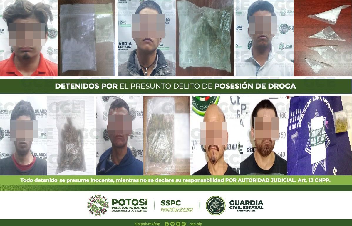 Por último, en el municipio de Cerritos, sobre las calles de Miguel Negrete y Simón Bolívar, los agentes de la GCE detuvieron a José de 41 años de edad y a Héctor de 42, después de que presuntamente les aseguraron una 27 gramos de marihuana y 15 dosis de “cristal”.