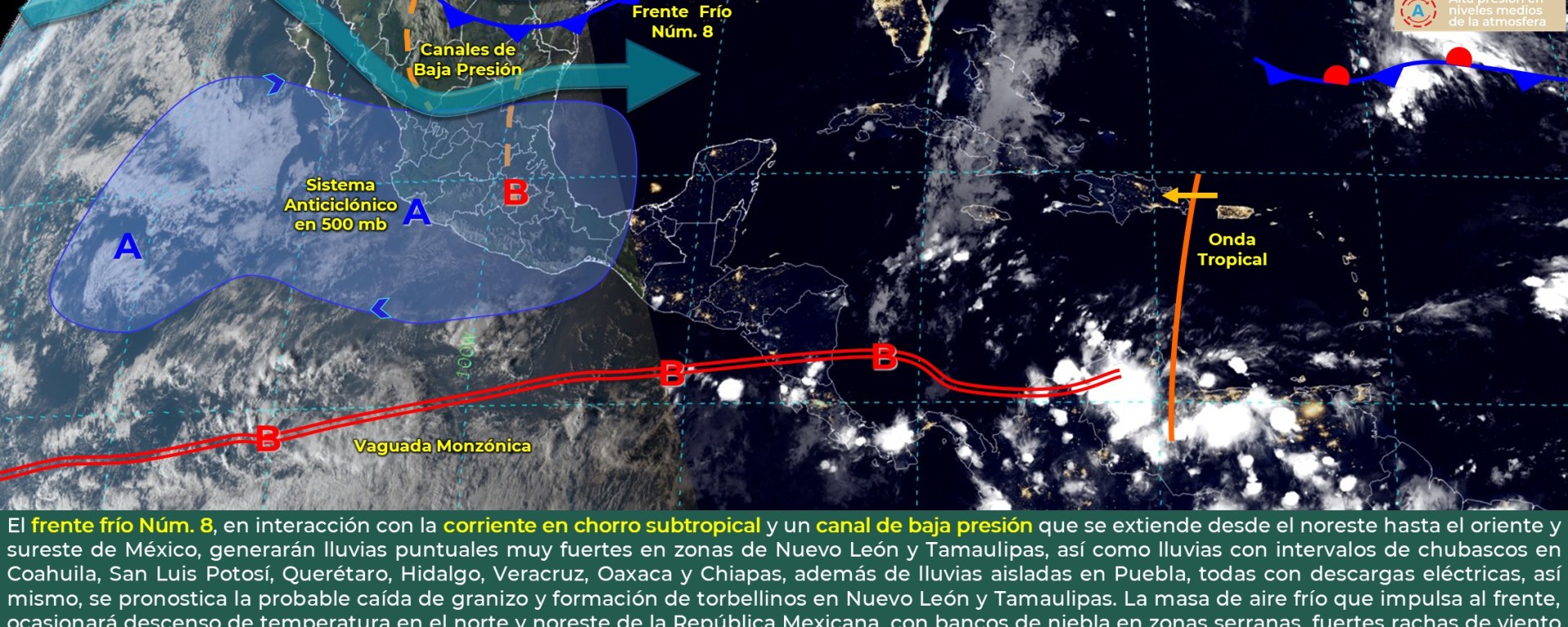 Evento de “Norte” con rachas de 60 a 80 km/h y oleaje de 1 a 3 metros de altura significante: costas de Tamaulipas y Veracruz.