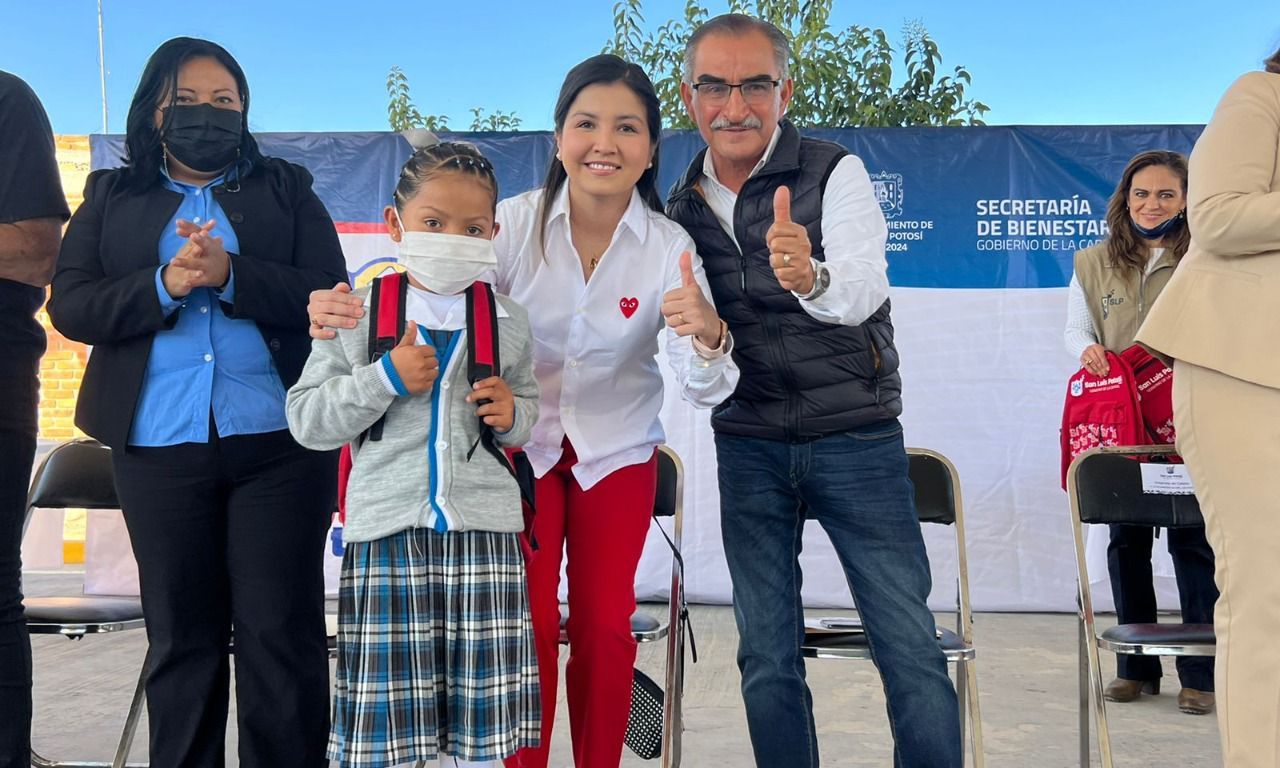 El Secretario del Bienestar del Ayuntamiento de San Luis Potosí, Martín Juárez Córdova, en cumplimiento de los compromisos del alcalde Enrique Galindo Ceballos, hizo entrega de 323 paquetes de útiles escolares para alumnos de nueve escuelas primarias municipales de las comunidades Las Lechuguillas, Las Manguitas, El Refugio, Terrones, Mezquital de Bocas, Tanquecito de Mendoza, Charquito Blanco, Tanque de la Cruz y Los García, como parte del programa A Mi Escuela Con Todo, que implementa el Gobierno de La Capital del Sí.