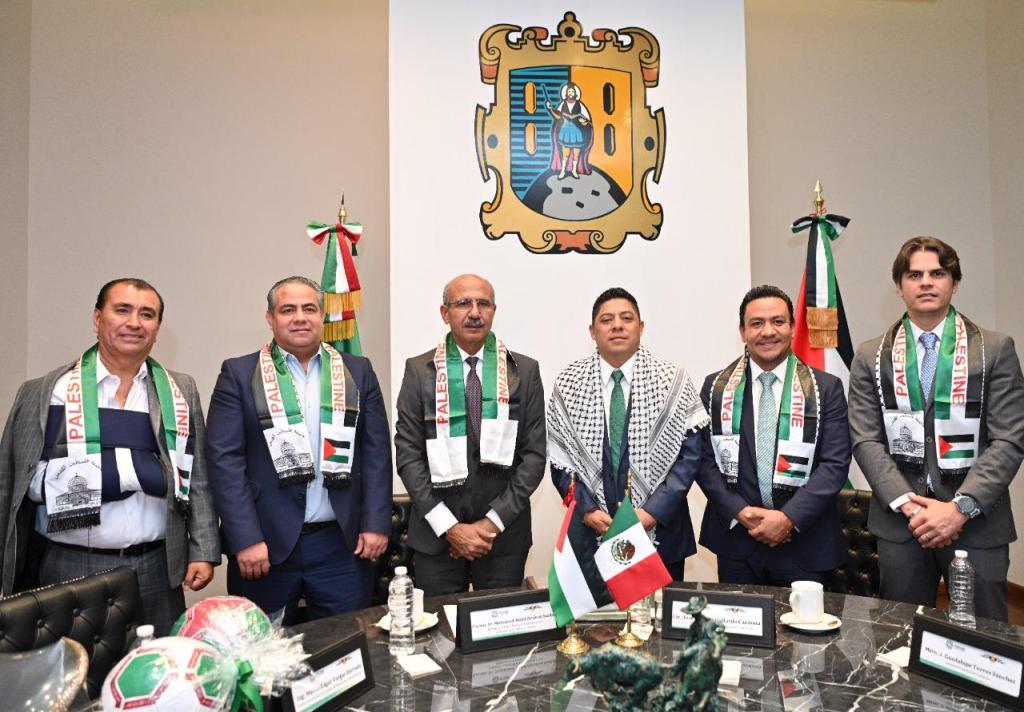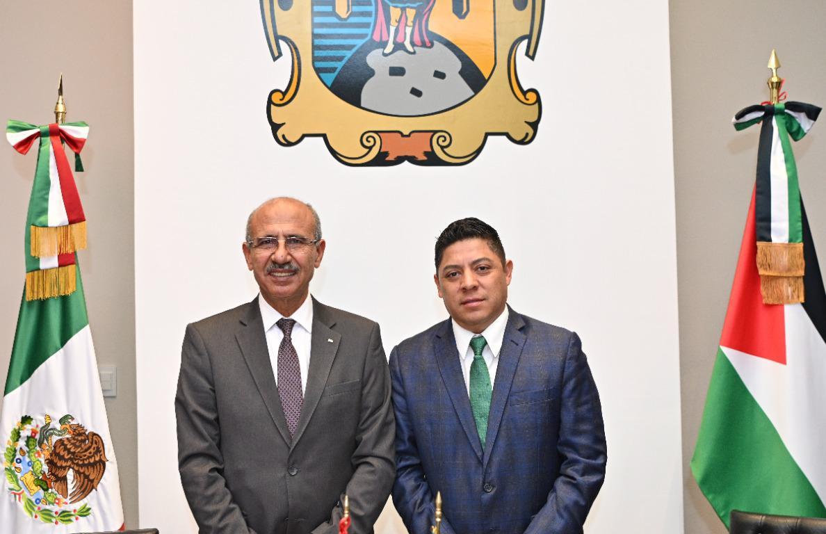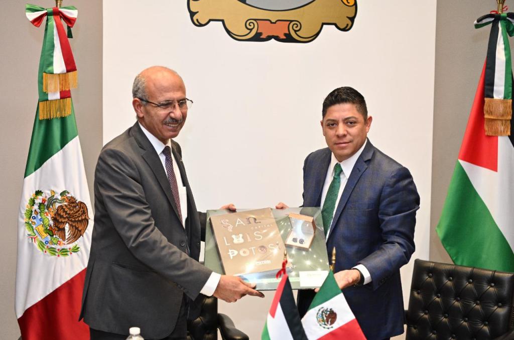 Como parte de la estrategia estatal de promover a San Luis Potosí a nivel mundial, mediante convenios comerciales y culturales, este lunes el Gobernador del Estado Ricardo Gallardo Cardona, sostuvo un encuentro diplomático con el Embajador Extraordinario y Plenipotenciario del Estado de Palestina en México, Mohamed Abdel Ibrahim Saadat, para posibilitar intercambios de carácter académico, cultural, tecnológico y comercial, entre la entidad potosina y ese país.