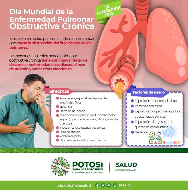 El día Mundial de la EPOC se celebra cada año el tercer mes de noviembre que, en este año corresponde al 16 de noviembre. Es una fecha promovida desde 2002 por la Organización Mundial de la Salud en conjunto con la Iniciativa Mundial contra la EPOC, tiene como objetivo concientizar a la población en general, al personal sanitario y a los tomadores de decisiones sobre la importancia de prevenir, diagnosticar y tratar esta enfermedad.