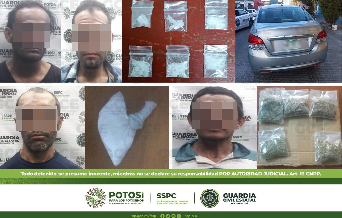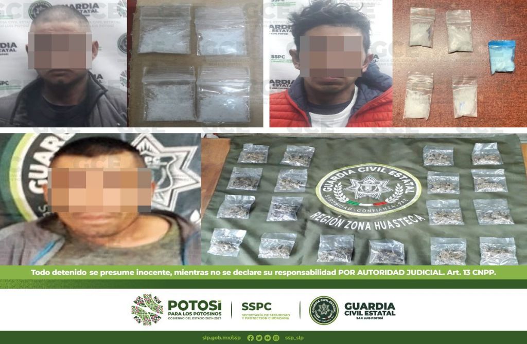A su vez, en el municipio de Soledad de Graciano Sánchez fueron detenidos tres masculinos. Dos de ellos en la zona centro; el primero en calle Abasolo, donde Samuel de 29 años de edad fue puesto a disposición de las autoridades por presunta posesión de cinco bolsitas con marihuana. Así mismo, sobre calle 16 de Septiembre fue detenido Erik de 31 años, luego de que los agentes de seguridad le aseguraron cinco dosis de “cristal”.