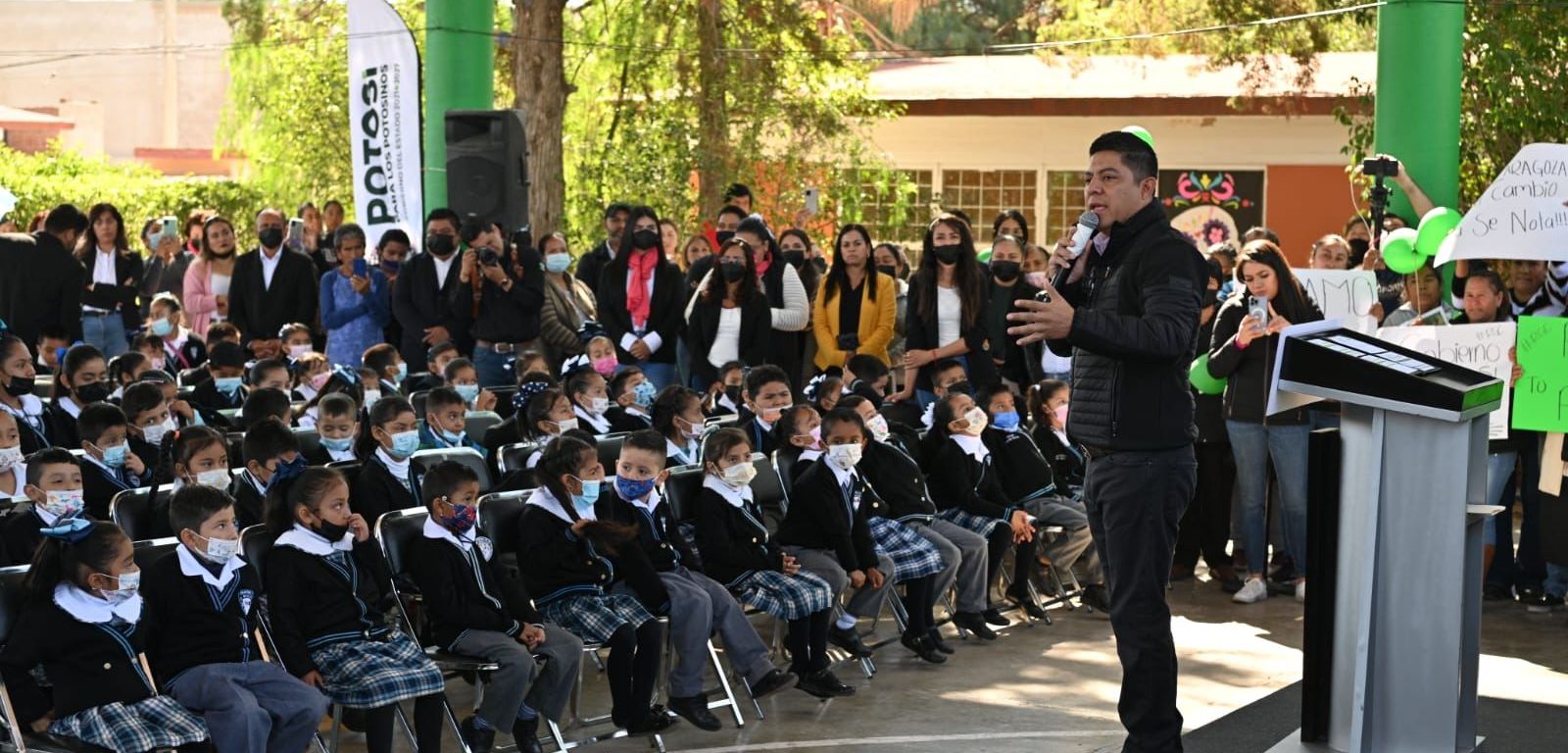 Zaragoza, San Luis Potosí.- El Gobierno del cambio que encabeza el Mandatario Estatal, Ricardo Gallardo Cardona, refrendó su compromiso con la niñez del municipio de Zaragoza y cumplió un compromiso más en el fortalecimiento de la infraestructura educativa, tras la inauguración de la nueva escuela primaria Mártires de la Revolución, a través del programa “Construcción de Escuelas Nuevas”, en la que se invirtieron 5.8 millones de pesos en beneficio de casi 500 alumnas y alumnos, quienes accederán a espacios dignos que complementarán su educación.