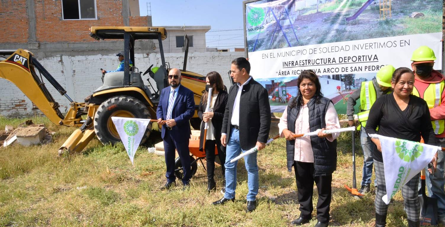 En representación de la alcaldesa de Soledad, Leonor Noyola Cervantes; el Secretario General del Ayuntamiento, Ernesto Barajas Ábrego, encabezó el evento de arranque de la construcción del parque urbano multifuncional en la colonia Arco de San Pedro.