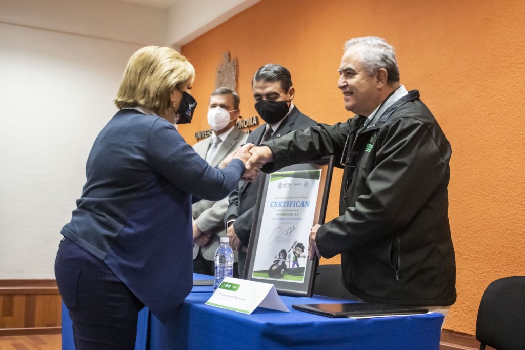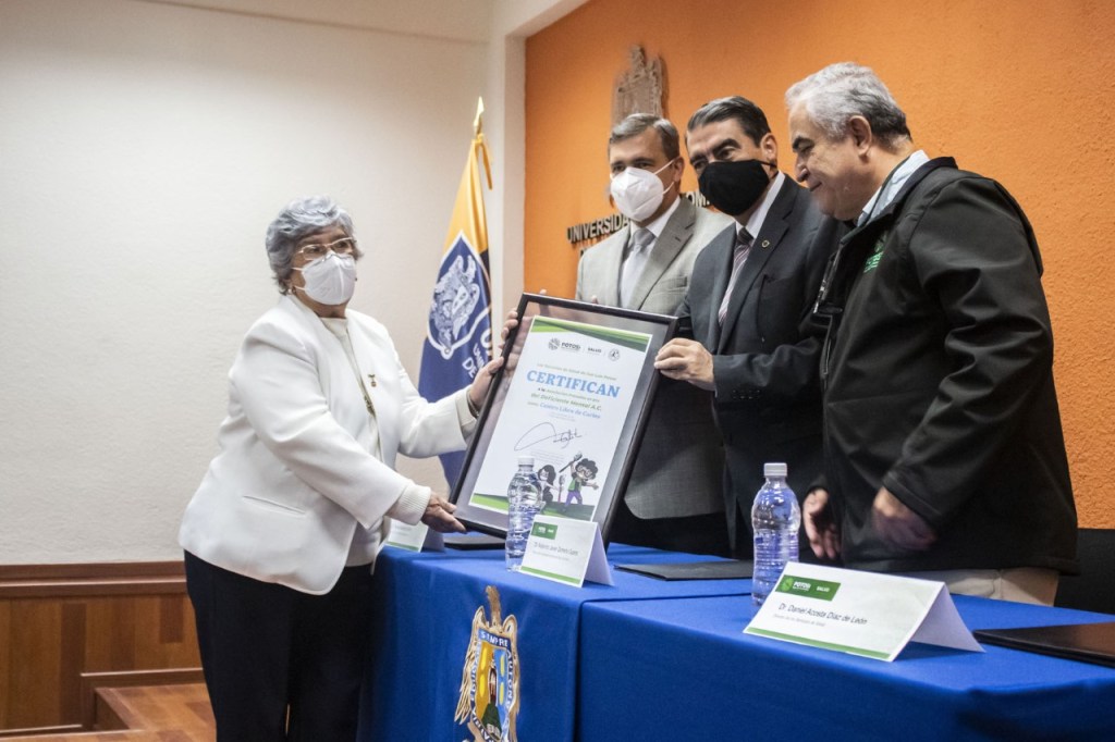La Casa de Salud Mental Dina Belanger A.C. y la Asociación Potosina en Pro del Deficiente Mental, recibieron certificados como Centros libres de caries por parte de los Servicios de Salud del Gobierno del Estado y la Universidad Autónoma de San Luis Potosí (UASLP). El reconocimiento como Centros libres de caries avala el trabajo conjunto de estomatólogos, pasantes, autoridades, profesores, alumnos, padres de familia, personal de apoyo y los pacientes beneficiados.