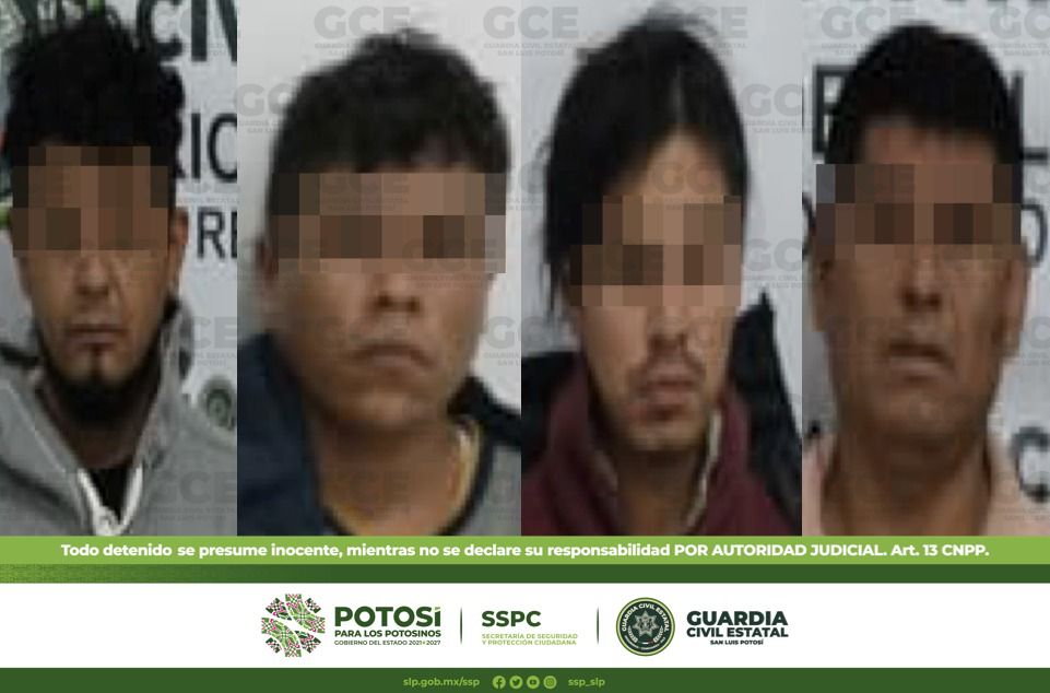 A través de los protocolos y maniobras policiales de actuación, los agentes de la GCE les dieron alcance unos metros más adelante, logrando la detención de Rigoberto de 33 años de edad, Bernardino de 37 años, Luis de 24, Librado de 26 y un menor de 16 años de edad.