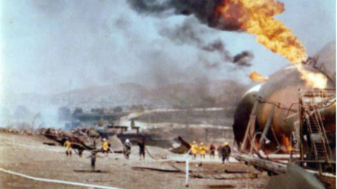 Ocurre una serie de explosiones e incendios en la terminal de almacenamiento de productos petrolíferos GLP de la planta de Petróleos Mexicanos PEMEX, en San Juan de Ixhuatepec (México), que causa entre 500 y 600 fallecidos y miles de heridos, además de la evacuación de más de 200.000 personas del norte del valle de México.