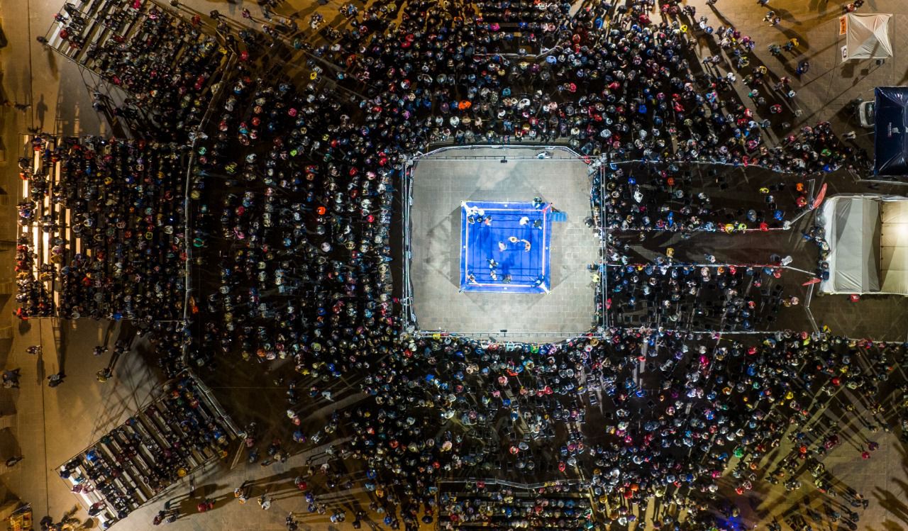 – La Plaza de Fundadores se llenó de aficionados a la lucha libre, con la batalla estelar en que Alberto El Patrón y Cinta de Oro vencieron a Rey Águila y Último Tiger.
