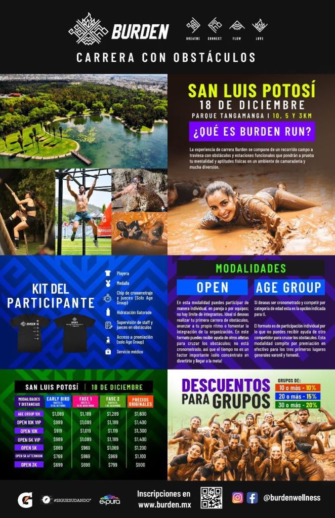Burden es una marca de eventos deportivos de origen potosino, desde 2017 ha colocado su bandera en una decena de mágicas sedes alrededor del país, tales como Peña de Bernal y Tequisquiapan, en Querétaro; Tapalpa y Puerto Vallarta, en Jalisco; León y San Miguel de Allende, en Guanajuato; Armadillo de los Infante, en San Luis Potosí; Acapulco, en Guerrero; y el Parque Nacional La Malinche, en Tlaxcala.