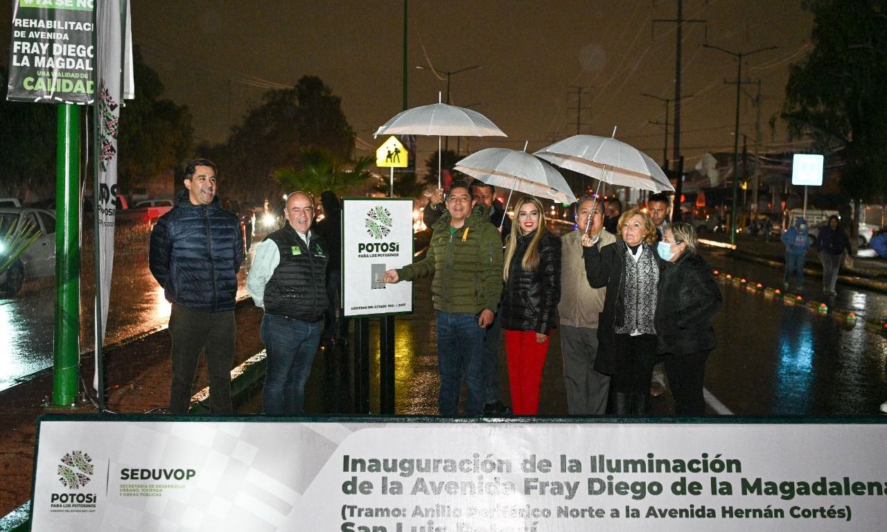 Para continuar con la transformación de San Luis Potosí y en especial de la zona metropolitana que por décadas permaneció en el absoluto abandono, este martes el Gobernador de San Luis Potosí Ricardo Gallardo Cardona, inauguró la Rehabilitación Integral de la avenida Fray Diego de la Magdalena, tramo de Hernán Cortés al Circuito Potosí Norte además de poner en operación el nuevo sistema de iluminación con una inversión 150 millones de pesos para beneficio de más de 150 mil usuarios directos e indirectos.