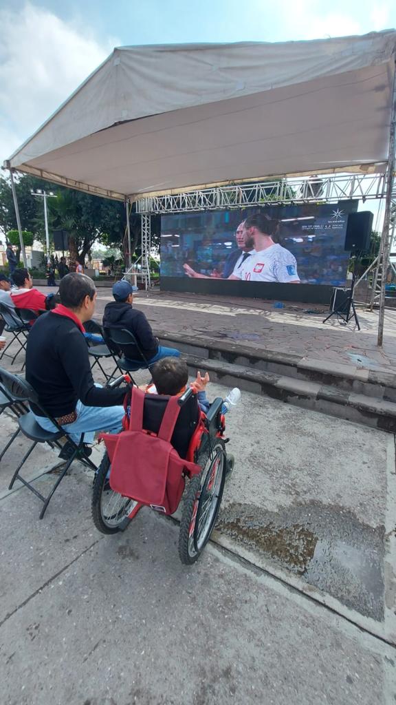 Con gran entusiasmo y en un ambiente festivo, los soledenses participaron en la exhibición del partido mundialista en la plaza principal del jardín Hidalgo, donde la Selección Mexicana empató a cero goles contra la selección de Polonia en el mundial Qatar 2022 y los asistentes agradecieron la iniciativa de la alcaldesa Leonor Noyola.