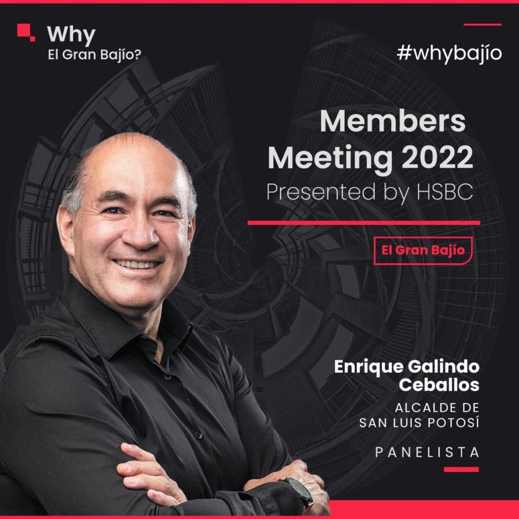 El alcalde de San Luis Potosí, Enrique Galindo Ceballos, participará este jueves, en la Ciudad de México en el encuentro sobre economía regional denominado “Members Meeting – El Gran Bajío”, organizado por HSBC, donde tendrá una presentación titulada: “San Luis Potosí, de Inversión Extranjera Directa a Macro Proyectos”, en un panel junto con el Embajador de Alemania en México, Wolfgang Dold; el Presidente y CEO BMW Group Planta SLP, Harald Gottsche; el CEO de Iberdrola México, José Enrique Alba Carcelén.