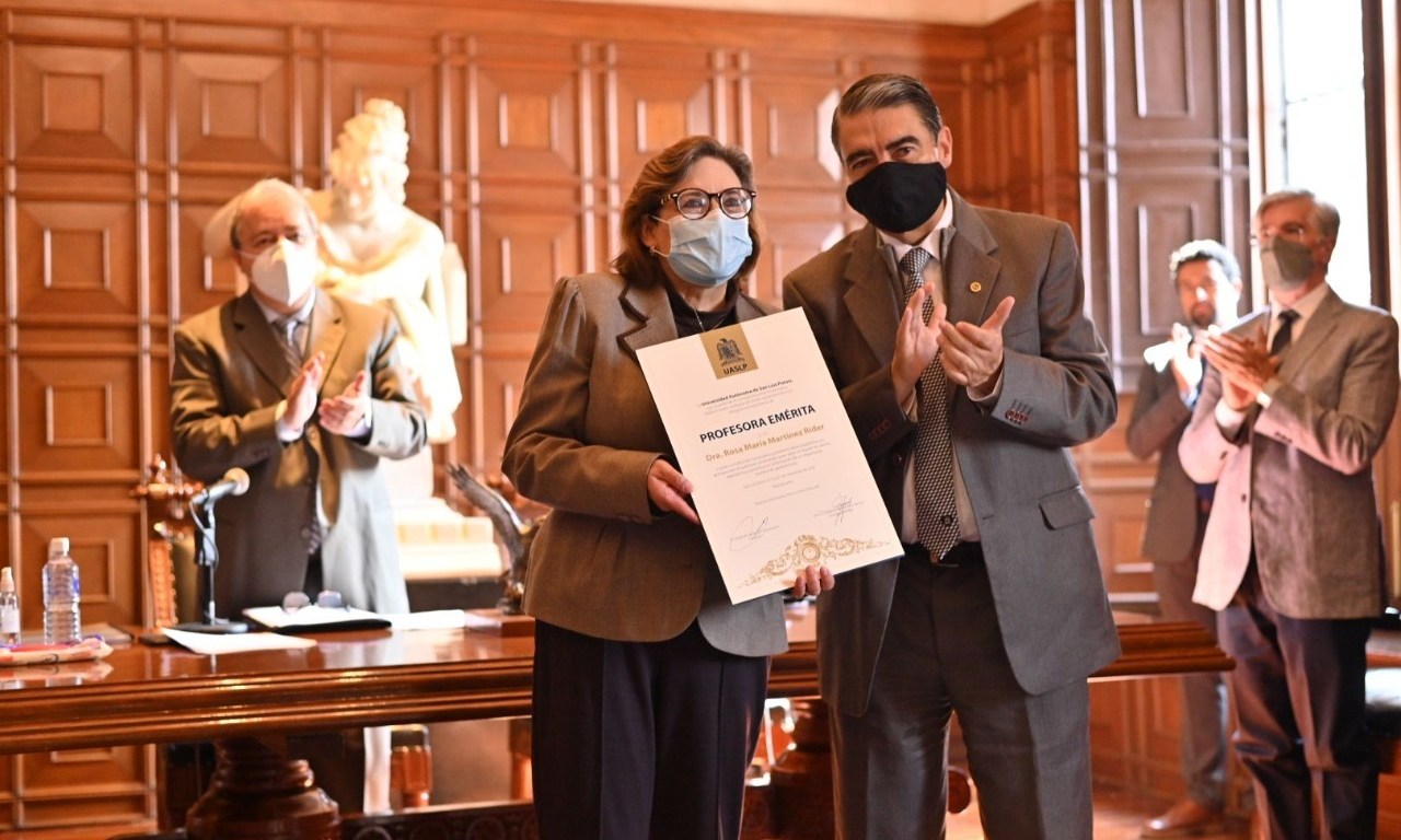 La Universidad Autónoma de San Luis Potosí a través de su Máximo Órgano de Gobierno, el H. Consejo Directivo Universitario, reconoció a través de la figura del nombramiento de Profesor Emérito, la trayectoria académica e institucional de la doctora Rosa María Martínez Rider, actual directora del Centro de Documentación Histórica “Rafael Montejano y Aguiñaga”.
